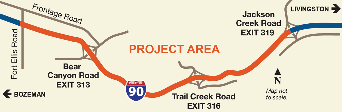 The Montana Department of Transportation (MDT) is rehabilitating approximately 6 miles of Interstate 90 (I-90) between Bozeman and Livingston. The project begins at the Fort Ellis Road overpass and proceeds east through the canyon to the Jackson Creek Road Interchange (Exit 319). The project will see both the east and westbound lanes of I-90 resurfaced along with several other improvements.